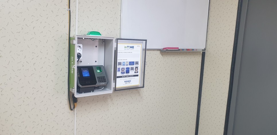 안녕하세요 직원 출퇴근 확인용으로 출역관리센터 인타임 라벨 5 / 7 가 설치되었습니다. 전원과 네트워크(...
