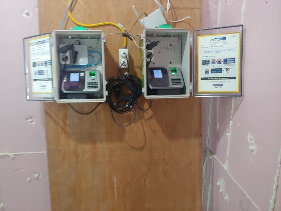 [제품 점검] 아산모아엘가2차아파트 => 근로자/직원 근태관리 서비스 - 공사/건설/건축 현장 필수아이템 : 공수/출역/출퇴근/급여관리 : 얼굴/안면/지문/장문 인식시스템 설치사례