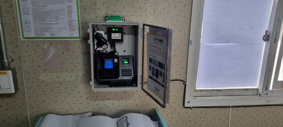 안녕하세요.... 직원 출퇴근 확인용으로 출역관리센터 인타임 라벨 5 / 7 가 설치되었습니다. 전원과 네트...