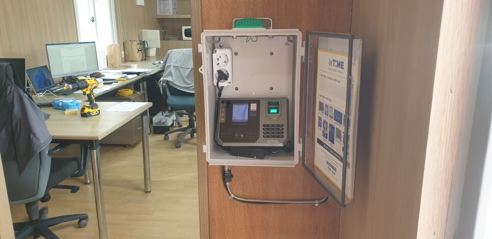 안녕하세요.... 직원 출퇴근 확인용으로 출역관리센터 인타임 라벨 5 / 7 가 설치되었습니다. 전원과 네트...