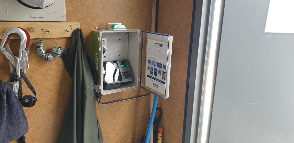 안녕하세요.... 직원 출퇴근 확인용으로 출역관리센터 인타임 라벨 5 / 7 가 설치되었습니다. 전원과 네트...