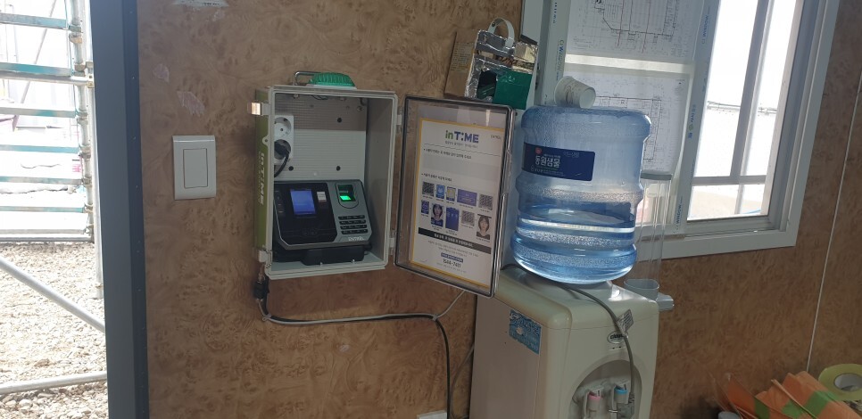 안녕하세요.... 직원 출퇴근 확인용으로 출역관리센터 인타임 라벨 5 / 7 가 설치되었습니다. 전원과 네트...