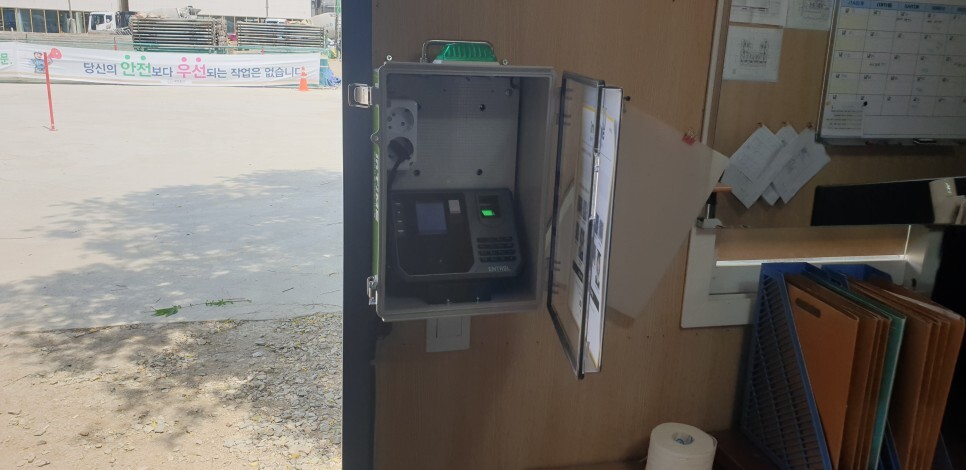 안녕하세요.... 직원 출퇴근 확인용으로 출역관리센터 인타임 라벨 5 / 7 가 설치되었습니다. 전원과 네트...