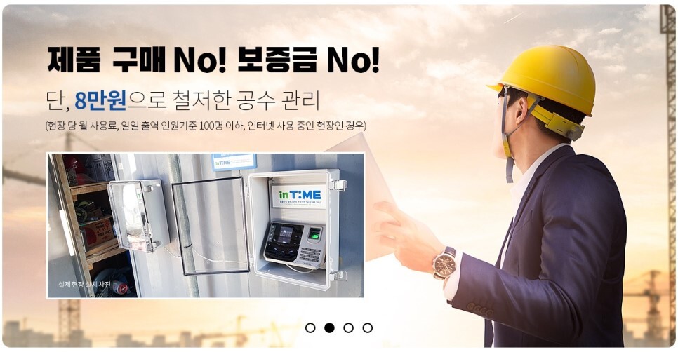 인타임 서비스 | 건설현장 얼굴인식 출역관리센터 인타임입니다. 부담없는 비용으로 전국 현장 출역관리를 맡기세요. 최고급 얼굴인식 장비를 제공하고 유지 보수와 관리까지. 귀사의 친절한