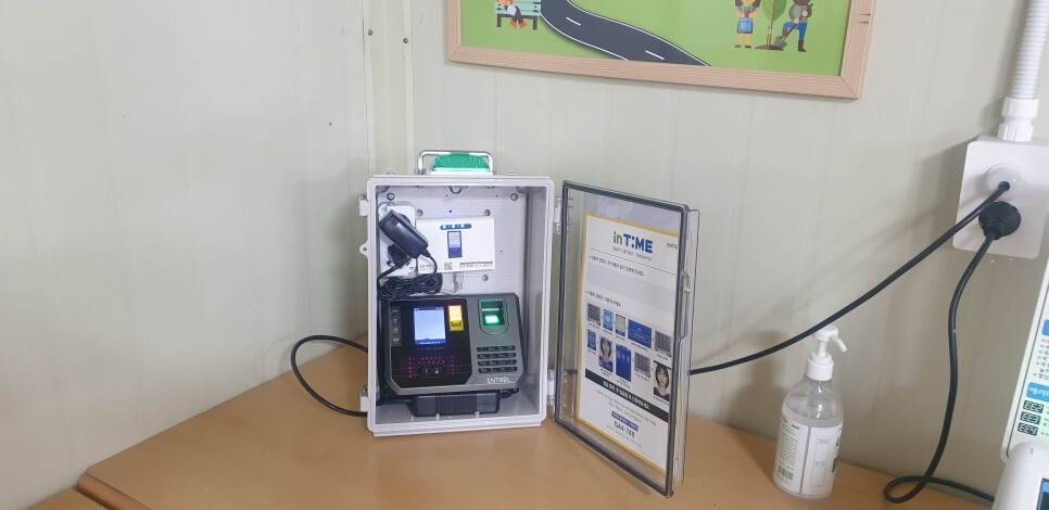 안녕하세요.... 직원 출퇴근 확인용으로 출역관리센터 인타임 라벨 5 / 7 가 설치되었습니다. 전원과 네트...