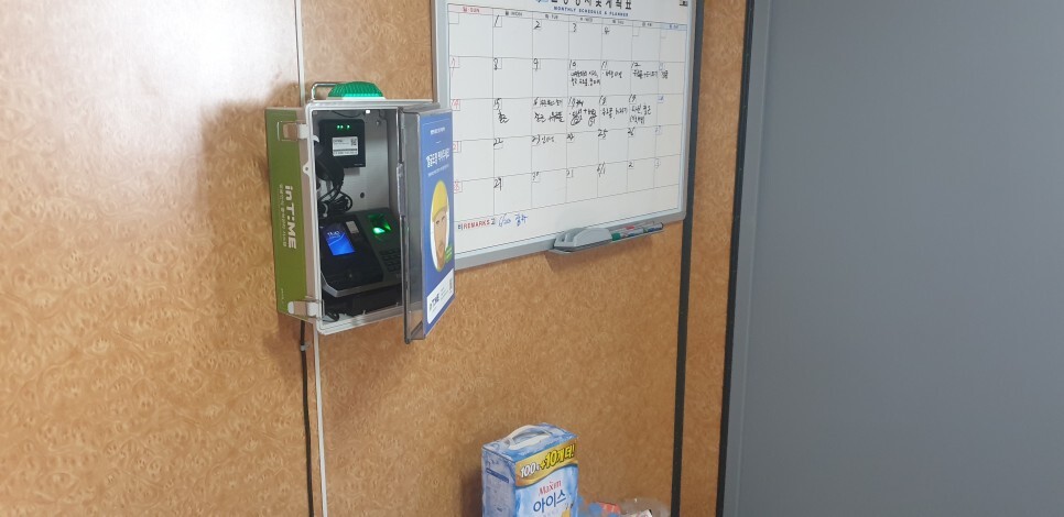안녕하세요.... 직원 출퇴근 확인용으로 출역관리센터 인타임 라벨 5 / 7 가 설치되었습니다. 전원과 네트...