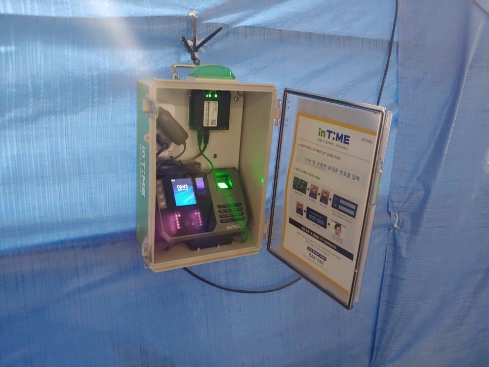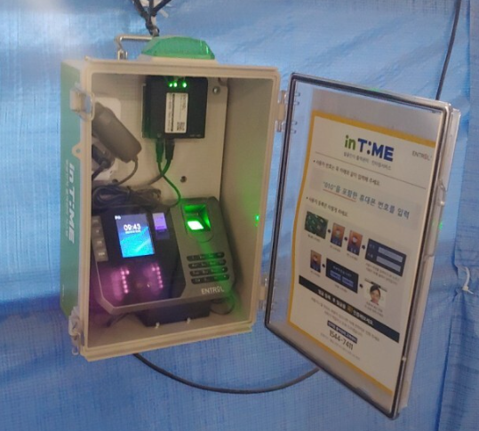 공사 현장직원 인력관리 근태 확인 (출퇴근기록기) 필수 아이템 => 얼굴인식기 인타임 라벨5 설치