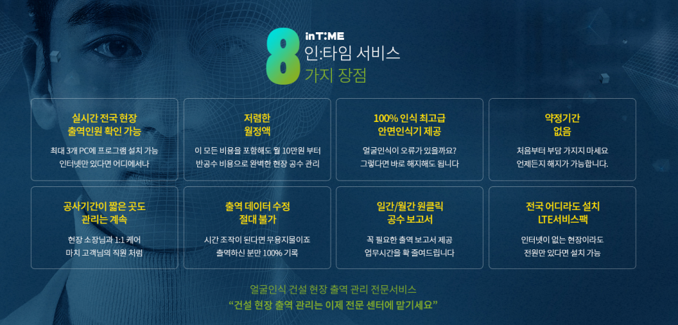 건설 현장 환경에서 얼굴 인식은 출결 및 근무 시간 관리에 탁월한 도움을 줍니다.